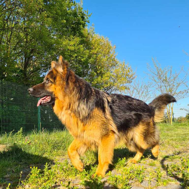 Amy ist eine wunderschöne schwarz/rot braune Altdeutsche Schäferhündin. Sie ist total menschenbezogen und ausgiebige Streicheleinheiten sind ein Muss. Im Rudel gibt sie zurzeit als älteste Dame den Ton an. Sie ist eine aufgeweckte lebhafte Dame mit großem Herz.